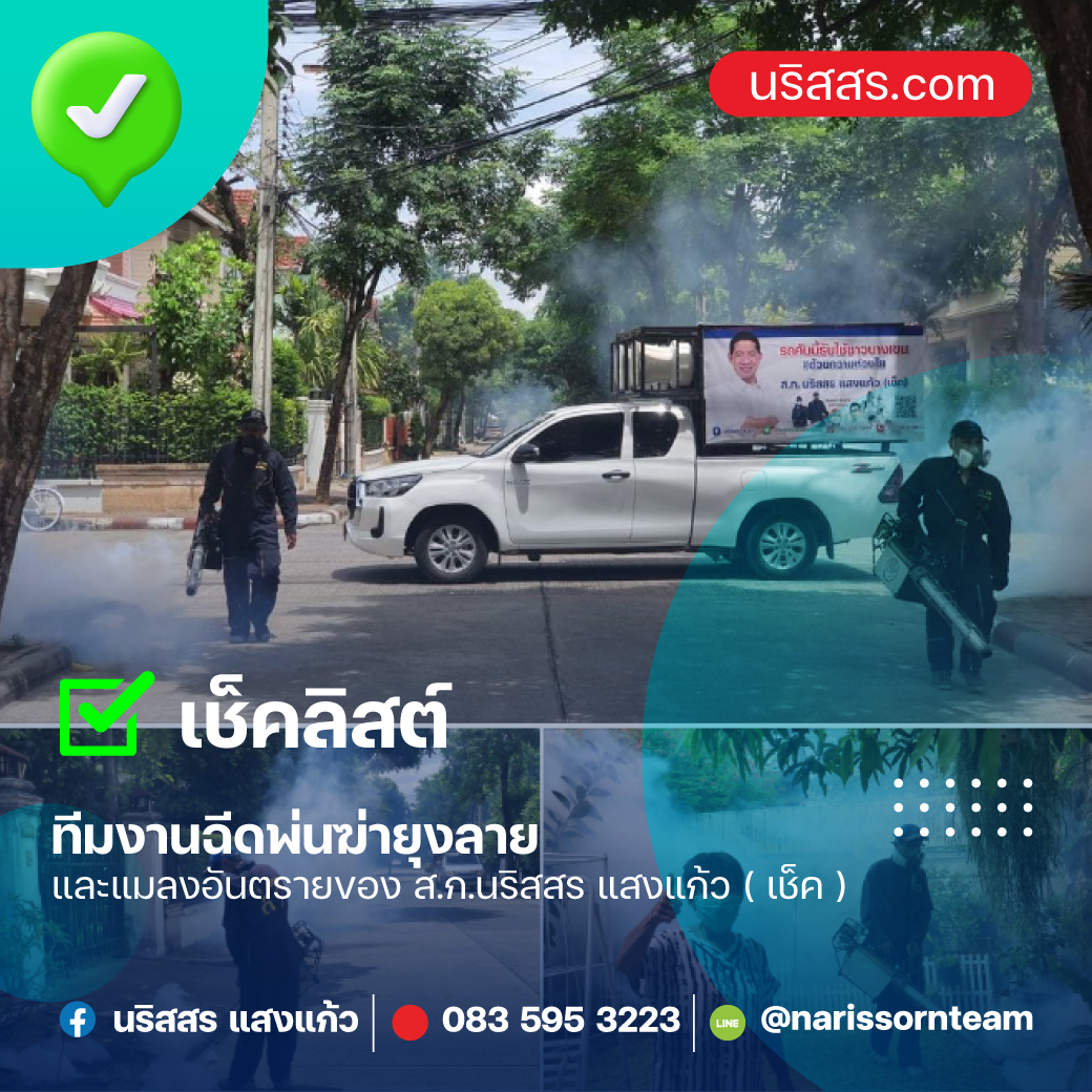 ทีมงานฉีดพ่นฆ่ายุงลายและแมลงอันตรายของ ส.ก.นริสสร แสงแก้ว ( เช็ค )