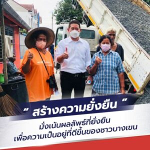 🔹 สร้างความยั่งยืน – ท้ายที่สุดปัญหาที่ถูกแก้ไขและพื้นที่โครงการต่างๆ ที่ได้รับการพัฒนาจะต้องมีความยั่งยืนของชุมชน ปัญหาที่ถูกแก้โดยไม่รับฟังเสียงจากทุกคนในพื้นที่จะไม่สามารถได้รับการแก้ไขได้อย่างตรงจุด ดังนั้นในทุกๆ การทำงานนั้นผมจึงมุ่งเน้นผลลัพธ์ที่ยั่งยืนเพื่อให้พี่น้องชาวบางเขนมีความเป็นอยู่ที่ดีขึ้นในระยะยาวครับ